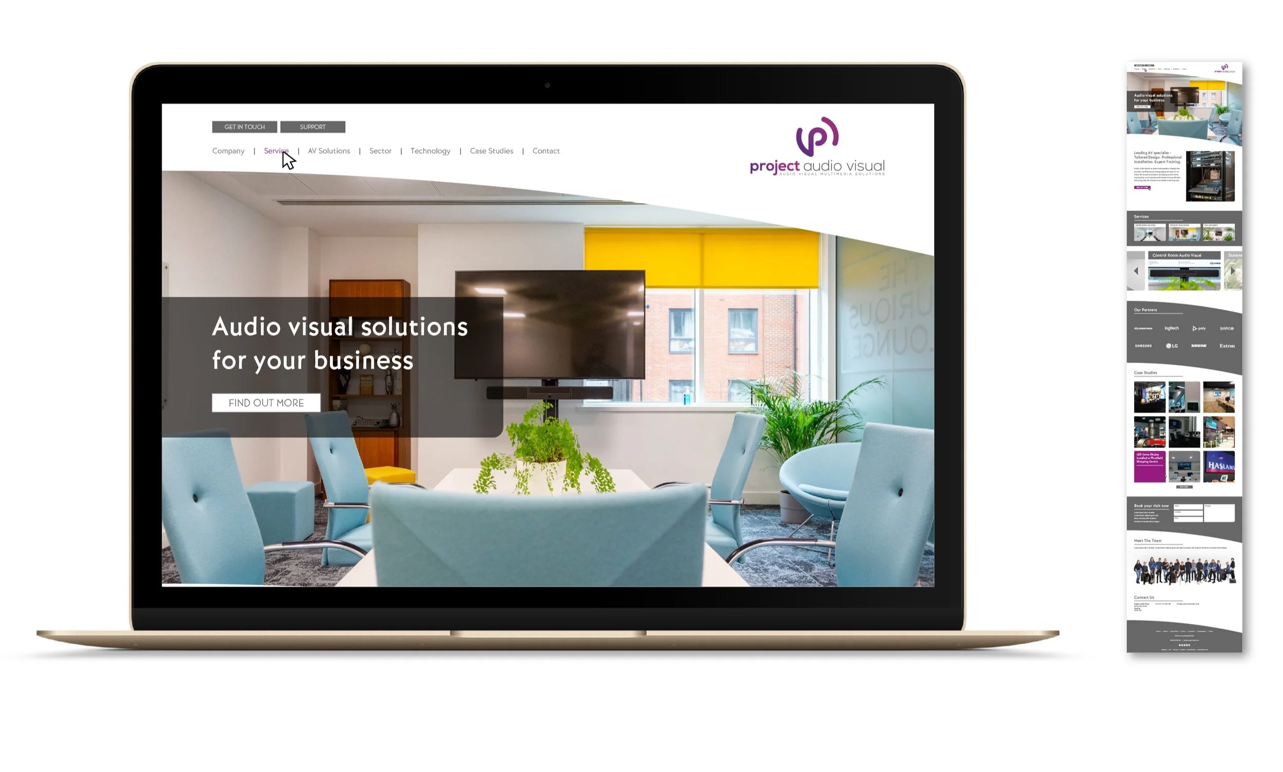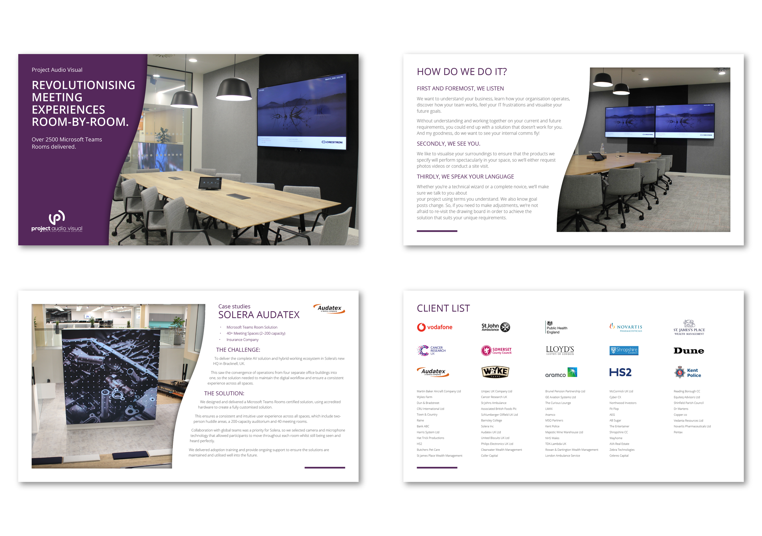 When worked with Project Audio Visual I created a new website, social assets and document templates.